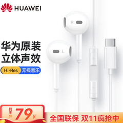 ¥79.00华为原装耳机有线半入耳式p30mate30/40/20nova7se荣耀9x10v20/30s 全国联保丨华为Type-C 白色