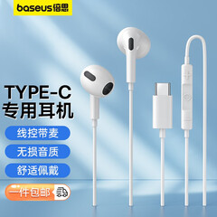 ¥49.00倍思 Type-c有线耳机半入耳式线控带麦高清通话适用于小米13华为苹果14荣耀手机电脑音乐 白色Type-C【14mm大动圈】