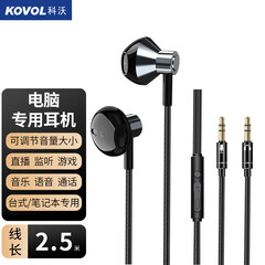 ¥39.90科沃 【2.5米加长线】电脑耳机入耳式有线带麦台式机双孔带麦克风笔记本耳麦二合一网课电竞游戏直播双插头
