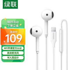 ¥119.00绿联 苹果耳机入耳式有线MFi认证 Lightning接口线控带麦适用iPhone14/13/12/11XrProMax