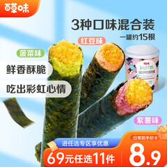 ¥10.90百草味 海苔肉松蛋卷100g夹心海苔脆 菠菜味+紫薯味+红豆味【限1件】RX 海苔肉松蛋卷-100g