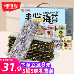 ¥39.90味滋源 海苔夹心脆40gx5罐节日送礼儿童零食大礼包5种口味紫菜海苔脆片