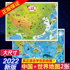 ¥3.00中国地图和世界地图 儿童地图学生版 中国地形图+世界地形图 地理百科知识挂图 儿童版 2张:中国地图+世界地图