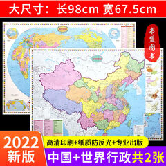 ¥86.50世界地图和中国地图和世界地图2023完整版新版少儿高清初中生儿童 2022新版地图(中国+世界)2张