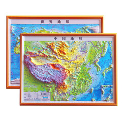 ¥109.0022新版中国世界地形图3D凹凸版便携立体地图23*3厘米 中国+世界地形图(套装2张)