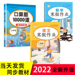 ¥226.00二年级口算题卡每天10000道上下册同步人教版数学练习册练习题一 二年级下册 口算题+看拼音写词语+阅读理解