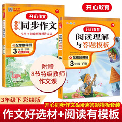 ¥49.80小学生开心同步作文+阅读理解与答题模板三年级下册(共2册)2023春语文教材思维导图写作技巧范文书