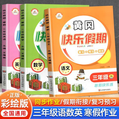 ¥19.80新版黄冈快乐假期三年级语文数学英语寒假作业教版衔接作业期末总复习同步训练练习册题寒假作业 语数英
