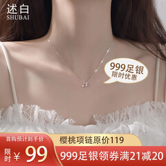 ¥119.00述白述白S999足银樱桃项链女蝴蝶竹子送女友老婆学生闺蜜生日七夕礼物 樱桃项链+银色款+证书+礼盒+贺卡 999足银系列项链