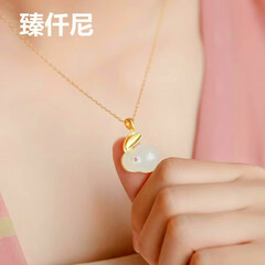 ¥599.00臻仟尼 s925银镶和田玉镀金生肖兔项链女吊坠玉坠锁骨链送女友生日礼物
