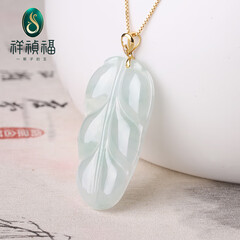 ¥690.00祥祯福珠宝(XIANGZHENFU JEWELRY)18K金扣头镶嵌翡翠吊坠金枝玉叶挂件冰糯种玉石树叶挂坠女款送礼
