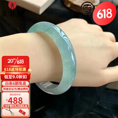 ¥9999.00千载一玉 翡翠手镯 女士冰绿玉石镯子珠宝玉镯 带证书 【款一淡绿约55毫米】QZC7787q