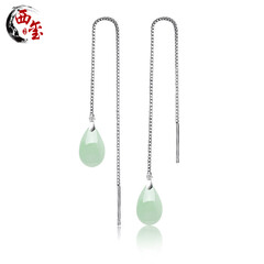 ¥198.00西玺 天然A货翡翠水滴耳坠翠玉耳环925银时尚气质百搭小清新玉石耳线 耳线款