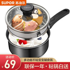 ¥79.00苏泊尔(SUPOR)奶锅宝宝辅食锅婴儿家用不粘泡面锅小蒸锅奶汤锅电磁炉燃气通用 16CM黑色【带蒸笼】