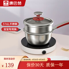 ¥139.00康巴赫(KBH) 奶锅316L不锈钢宝宝婴儿辅食锅热牛奶泡面小奶锅电磁炉燃气通用 【蜂窝奶锅16cm】带蒸屉