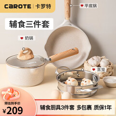 ¥209.00卡罗特 奶锅小宝宝辅食锅婴儿麦饭石色不粘锅家用热奶泡面锅煮面锅 汤锅 3件套(18奶锅+24煎锅+蒸笼)