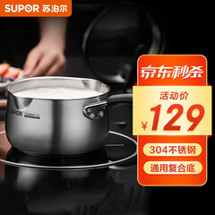 ¥129.90苏泊尔SUPOR小红圈304不锈钢奶锅可立盖18cm加厚复底婴幼儿辅食锅电磁炉燃气通用ST18JA1