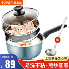¥119.00苏泊尔(SUPOR)奶锅宝宝辅食锅不粘锅牛奶锅泡面锅大容量电磁炉明火通用 18CM ET18HAN01【带蒸格】