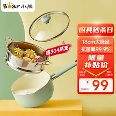 ¥129.00小熊伊万(BEAREWAN)奶锅 辅食锅 抗菌麦饭石色不粘锅 带蒸笼 CP-G0020-P03 18cm