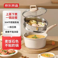 ¥99.00京东京造 奶锅 白麦饭石色不粘奶锅带蒸屉煮锅辅食锅 燃气电磁炉通用18cm