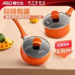¥59.00爱仕达(ASD) 奶锅 16cm不粘辅食锅家用宝宝婴儿奶锅热奶煮饭泡面多用小汤锅 橙色直身+蒸格丨明火电磁通用