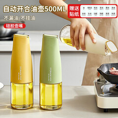 ¥21.90拜杰油壶玻璃酱油瓶调味壶醋壶防漏油不挂油储油罐自动开合500ml绿色