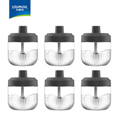 ¥49.90乐唯诗(NERVISHI)玻璃调味罐防潮勺盖一体密封套装玻璃盐味精调料盒 乐思调味罐纳户黑【260ml*6】
