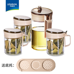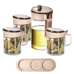 ¥43.90乐唯诗(NERVISHI) 乐唯诗 玻璃油壶家用酱油瓶防漏油瓶调料罐调料盒小油罐香油醋瓶 油壶1+调味罐3+底拖/卡其色