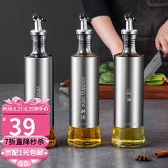 ¥39.00美厨(MAXCOOK)不锈钢玻璃油壶油瓶 不挂油调料瓶罐盒套装(500ML*3只装)MCPJ9311