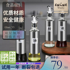 ¥149.90EWIWE 玻璃油壶套装不锈钢玻璃油瓶调料瓶油瓶醋瓶料酒酱油控油防尘防漏嘴家用厨房调味瓶四件套装 300ML食品级材质/刻度款/四件套