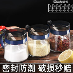 ¥12.80欣美雅(xinmeiya)厨房调味罐调料盒套装油瓶防漏嘴玻璃油壶密封调料罐防潮调味盒 幽蓝调料盒3只【配标签+勺子】