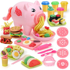 ¥39.90纽奇(Nukied)彩泥面条机黏土模具儿童手工制作3-6岁男孩女孩DIY早教启智玩具 小猪面条机21件套-粉色 彩泥玩具