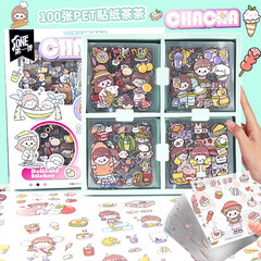 ¥12.90初格 儿童手账贴纸【100张无痕防水】咕卡贴纸礼盒套装diy卡通手账素材贴画男女孩玩具 茶茶系列