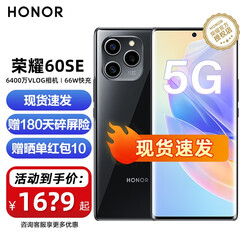 ¥2299.00荣耀60SE 新品5G手机 120Hz曲面屏 66W超级快充 幻夜黑 8GB+256GB(享180天碎屏保)
