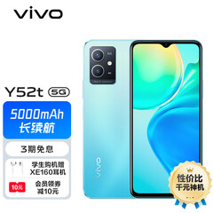 ¥1299.00vivo Y52t 8GB+128GB 冰湖蓝 5000mAh大电池 时尚质感外观 面部指纹双解锁 双模5G 全网通 手机