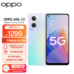 ¥1399.00OPPO A96 8GB+128GB 琉璃幻彩 呼吸灯 高通八核5G芯片 33W快充 OLED超清屏 游戏拍照5G手机oppoa96