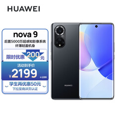 ¥2699.00HUAWEI nova 9 120Hz高刷 后置5000万超感知影像 支持鸿蒙操作系统 8GB+128GB亮黑色华为手机 标配无充