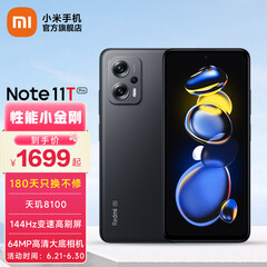 ¥1699.00Redmi Note11T Pro+ 5G 天玑8100 144HzLCD旗舰直屏120W快充 8GB+128GB子夜黑 5G智能手机 小米红米