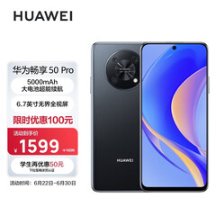 ¥1599.00华为畅享 50 Pro 5000mAh大电池超能续航 6.7英寸无界全视屏 5000万像素超清影像 128G 幻夜黑 华为鸿蒙手机