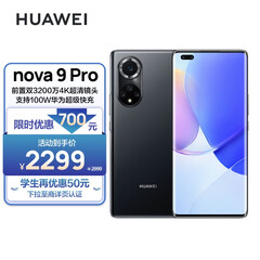 ¥2099.00华为nova9pro 手机 双3200万前置Vlog镜头 10亿色臻彩屏 亮黑色 8+128G(100W超级快充套装+碎屏险)