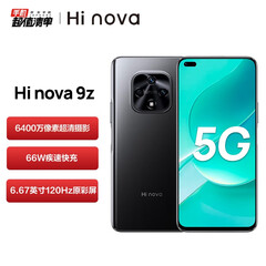 ¥1599.00华为智选 Hi nova 9z 5G全网通手机 6.67英寸120Hz原彩屏hinova 6400万像素超清摄影 66W快充8GB+256GB亮黑色