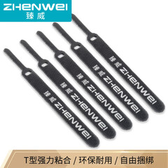¥9.80臻威(ZHENWEI) 魔术贴扎带 理线器固定夹 可调节线卡线缆收纳理线可粘式线夹抽拉粗线办公桌墙壁 带扣-【10*130mm】-五条装-黑色