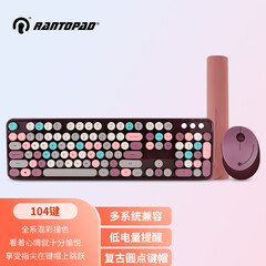 ¥157.00镭拓 Rantopad RF104无线键盘鼠标套装 办公键鼠套装 复古键盘 鼠标 套装104键全尺寸 紫色混彩