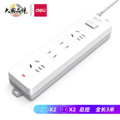 ¥26.90得力(deli) 新国标安全插座/插排/插线板/接线板/排插/拖线板 总控开关 儿童保护门 4位3米 18251-03