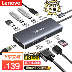 ¥159.00联想Type-C拓展坞USB分线器USB-C转HDMI/VGA/千兆网口转接头笔记本电脑扩展坞适用小新苹果mac/ipad雷电3/4