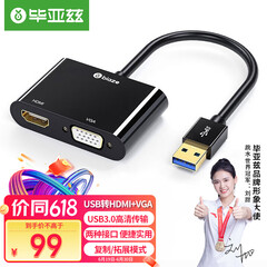 ¥99.00毕亚兹 USB3.0转HDMI+VGA转接头扩展坞 电脑视频转换外置显卡笔记本台式机接电视投影同屏拓展连接线