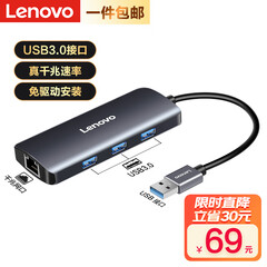 ¥99.00联想(lenovo)USB3.0分线器拓展坞扩展坞转千兆网口RJ45有线网卡转接头笔记本电脑USB扩展小新四合一转换器