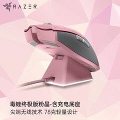 ¥649.00雷蛇(Razer)毒蝰终极版有线/无线双模鼠标(含底座)人体工学 电竞游戏 双手通用型 轻量化RGB幻彩灯效 粉晶