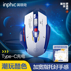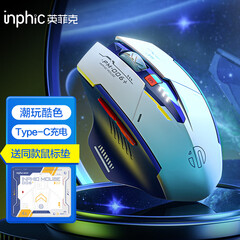 ¥59.00英菲克(INPHIC) M6P无线鼠标可充电式办公静音人体工学适用于惠普华硕华为笔记本电脑无限轻音 潮酷蓝白机甲【电量显示+type-c送机甲鼠标垫】