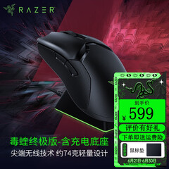 ¥599.00雷蛇(Razer) 毒蝰 无线鼠标游戏鼠标 电竞鼠标通用 RGB lol吃鸡神器cf 无线毒蝰终极版含底座(20000DPI)